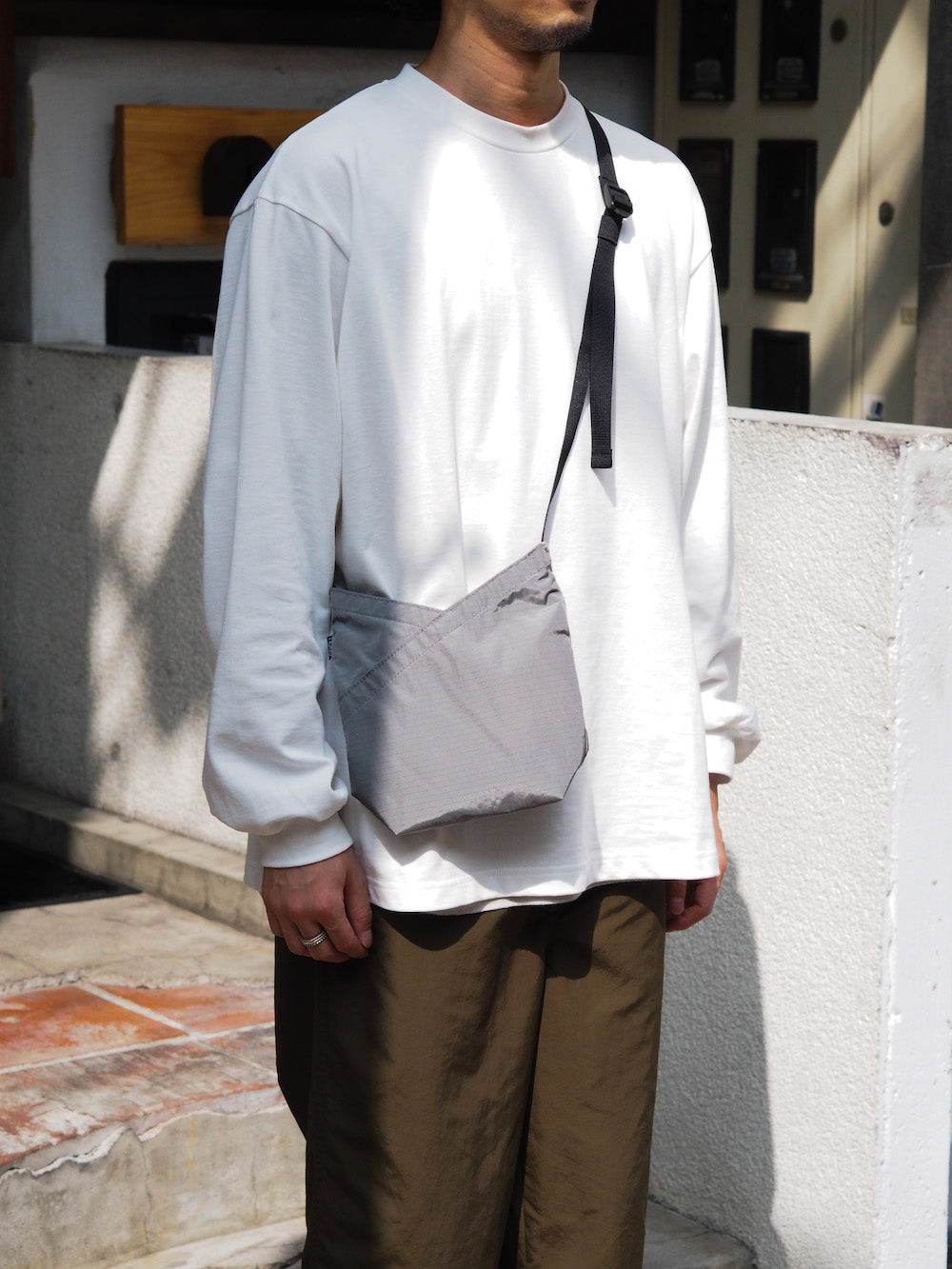 風呂敷や手ぬぐいを縫い合わせ、鞄の代わりとして使われた「あずま袋」から着想を得たワンショルダーバッグのSサイズ。フォルムと斜めに配されたポケットが特徴的で、財布や携帯電話、鍵なども収まるサイズです。