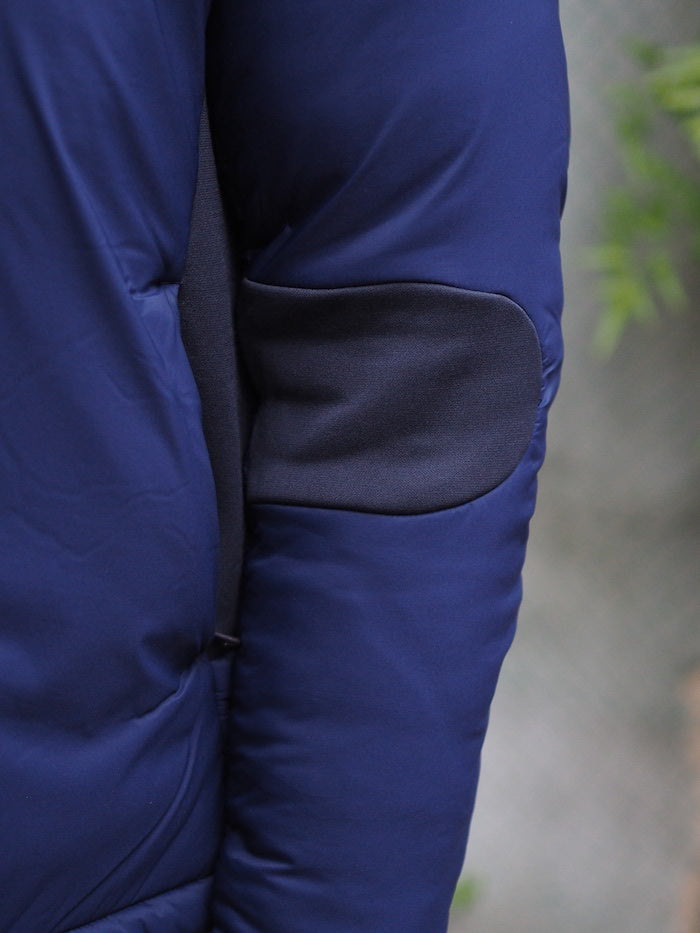 マットな質感のストレッチナイロンタフタ素材を使用したパフジャケットになります。腕、脇部分を伸縮性の高いストレッチジャージーで切り返した特徴的なディティール。中綿には米軍での採用実績のある高い保温性が特徴のCLIMASHIELD®を使用しています。