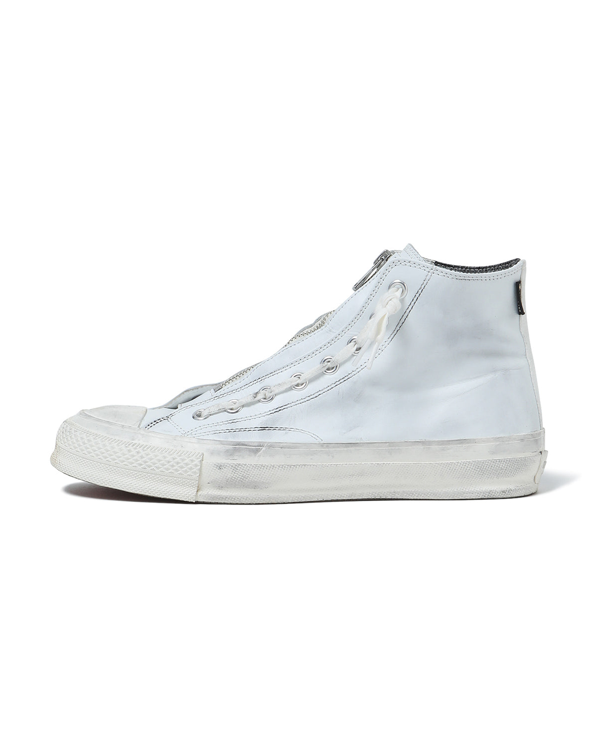 ファクトリーブランド〈SPINGLE MOVE〉と共同開発した、GORE-TEX 2L搭載の完全防水仕様の8ホールハイカットスニーカー「DWELLER TRAINER HI COW LEATHER WITH GORE-TEX by SPINGLE MOVE」です。特徴的なセンタージップ仕様、予めエイジング加工を施すことで独特の風合いに仕上げています。