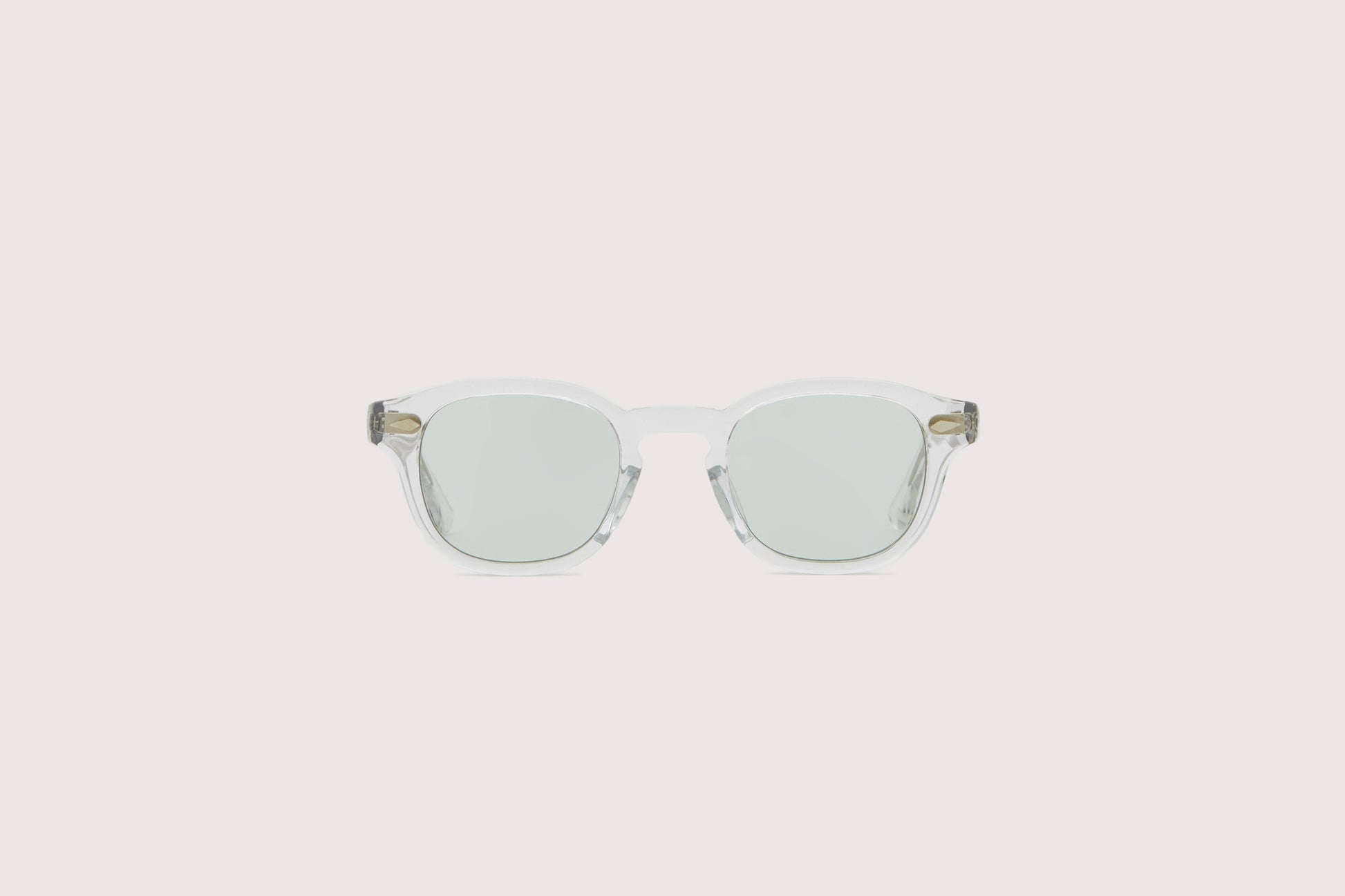 NOCHINO OPTICALの顔とも言える調光レンズ搭載モデル。オリジナル染色を施した上品なライトグリーンからダークグレーへと変化し、屋内から屋外と様々なシーンにマッチする。 クリアフレームは様々なスタイルとの相性が良く、ジャンルレスでエイレスジとジェンダーレスと、正にブランドのアイデンティティを象徴するモデル。フィットボスリントンタイプ。