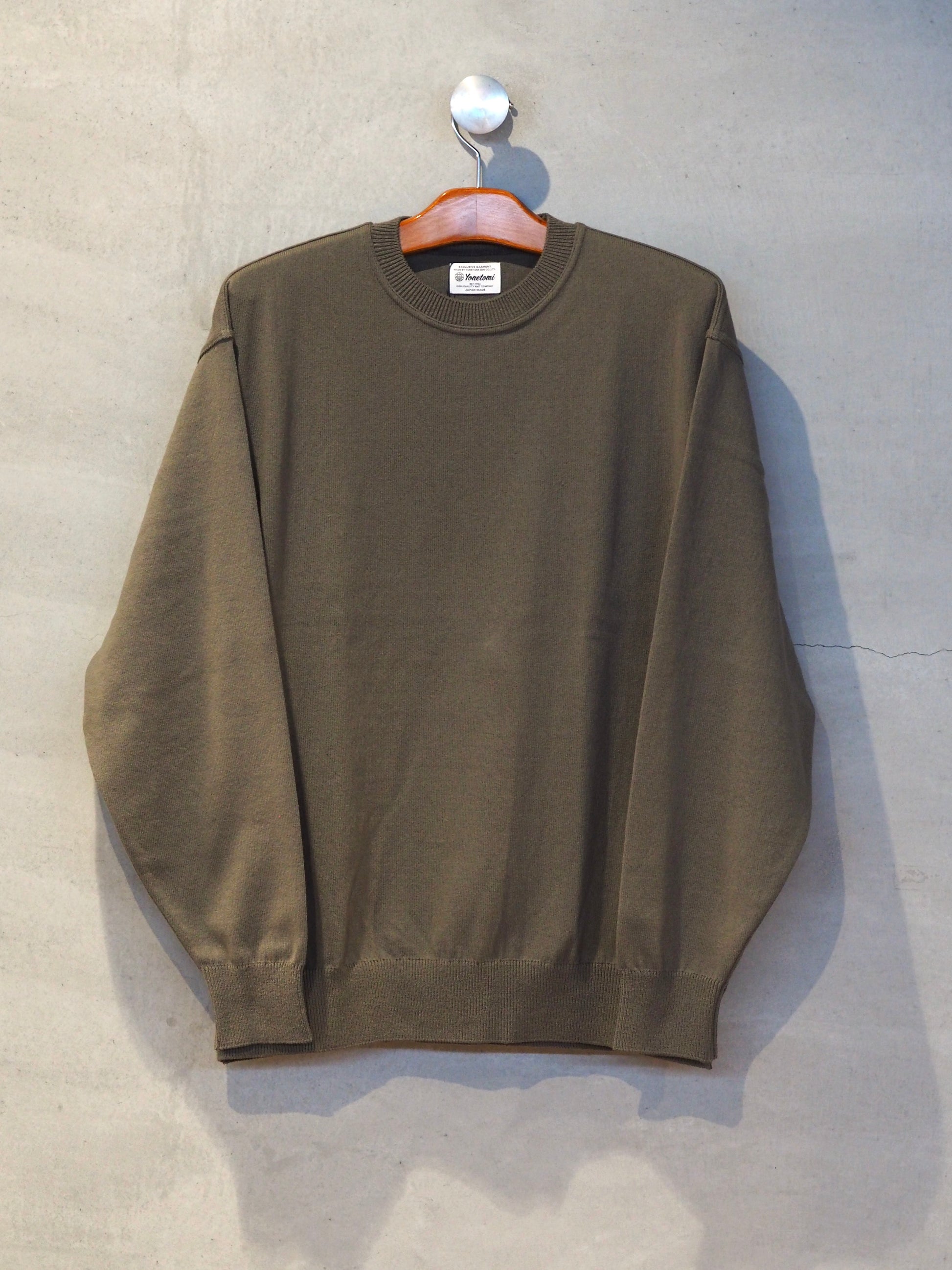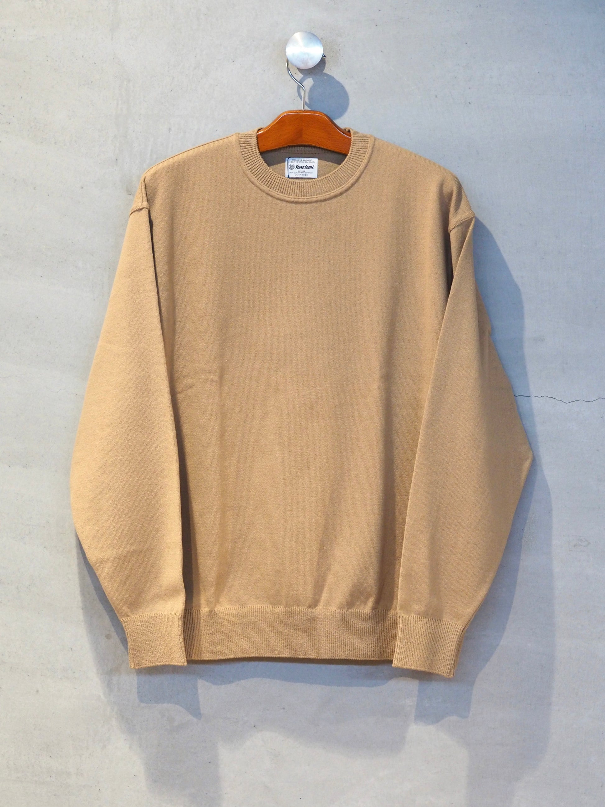 別注強撚ウェーブコットンを度詰めでしっかりと編み立てた、オールシーズン着用できる素材。 上品なニット素材による、ヴィンテージスウェットのようなボックスシルエットが特徴です。 ・別注 強撚ウェーブコットンを使用 ・度詰め天竺編み ・ヴィンテージスウェットのようなボックスシルエット ・手洗いによる洗濯処理ができる