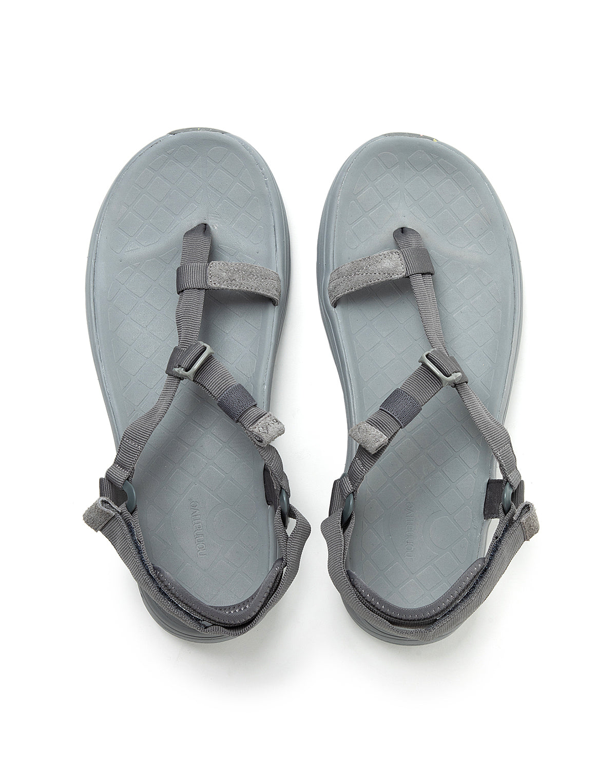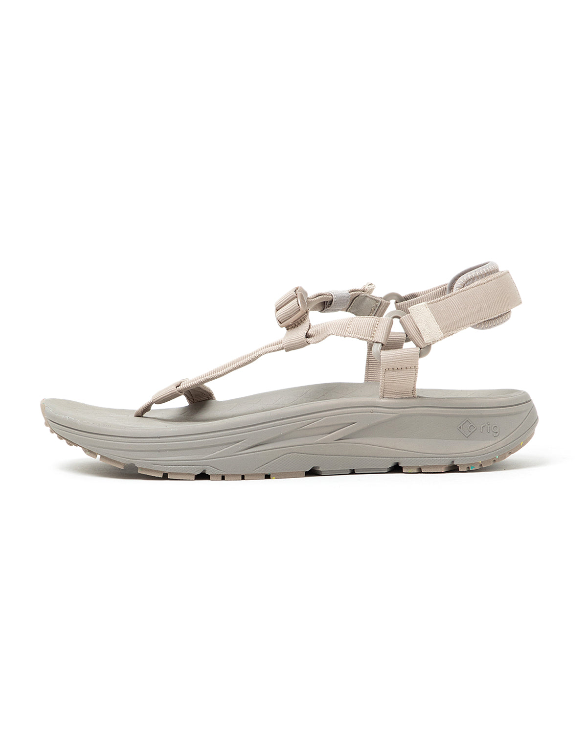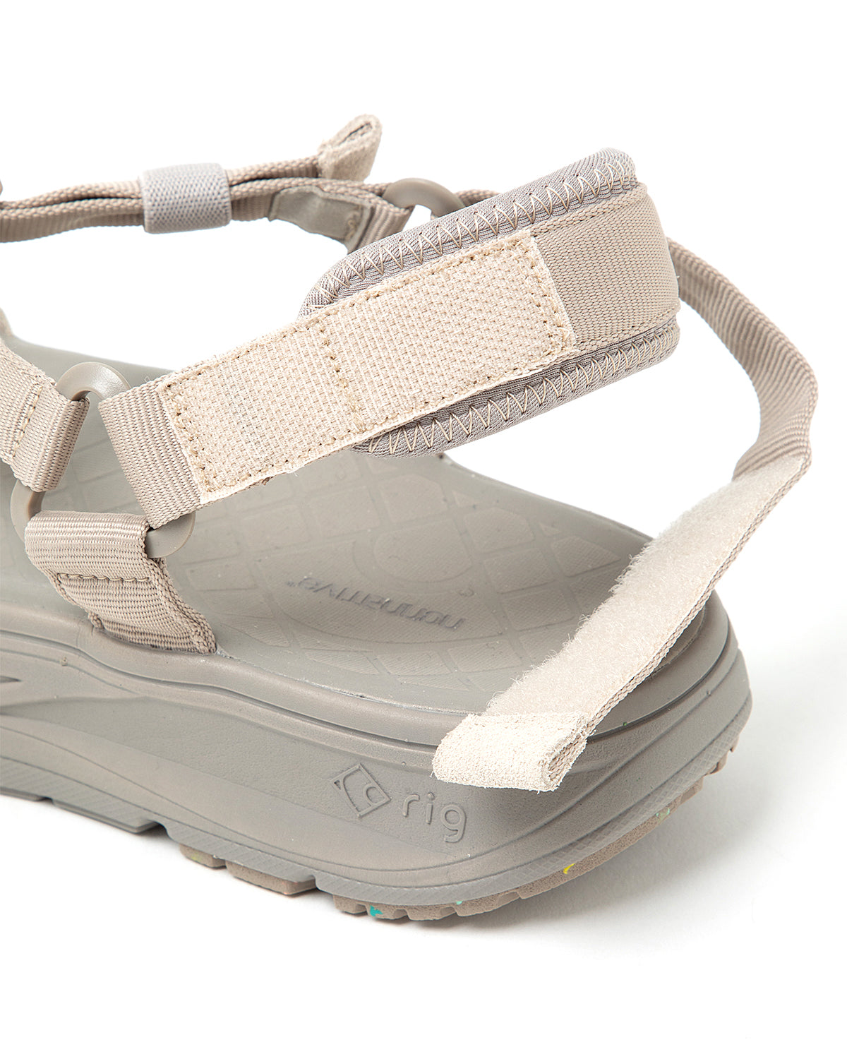 「nohy (ノヘイ)」をベースにした〈rig × nonnative〉オリジナルデザインの「KAMBA (カンバ)」。今シーズンは昨年モデルのチューブストラップから、平織のストラップと調節可能なアジャスターでアップデート。より甲にフィットし、新たにベルクロ止めのヒールパーツを採用することで足全体へのホールド感を向上させています。
