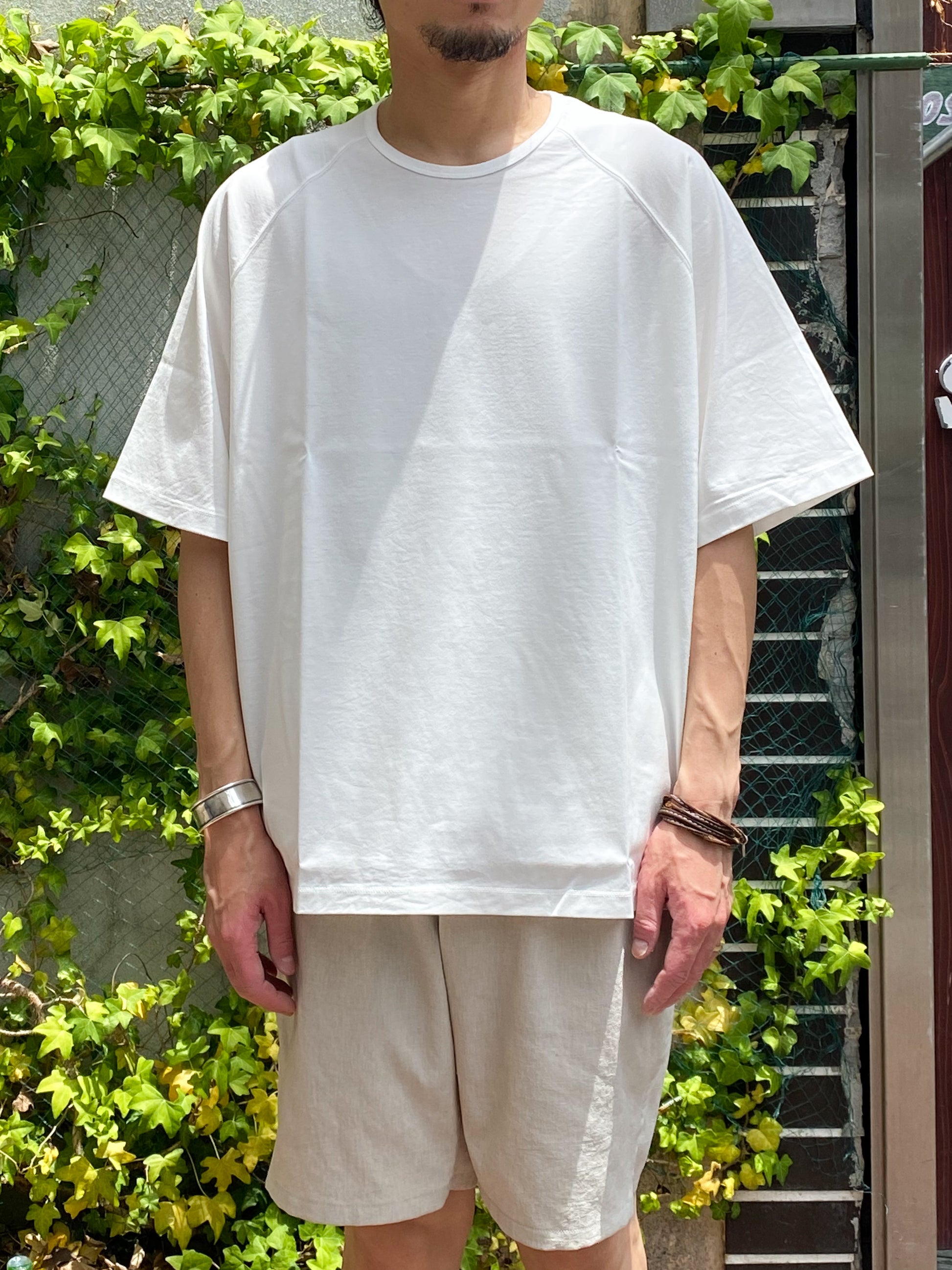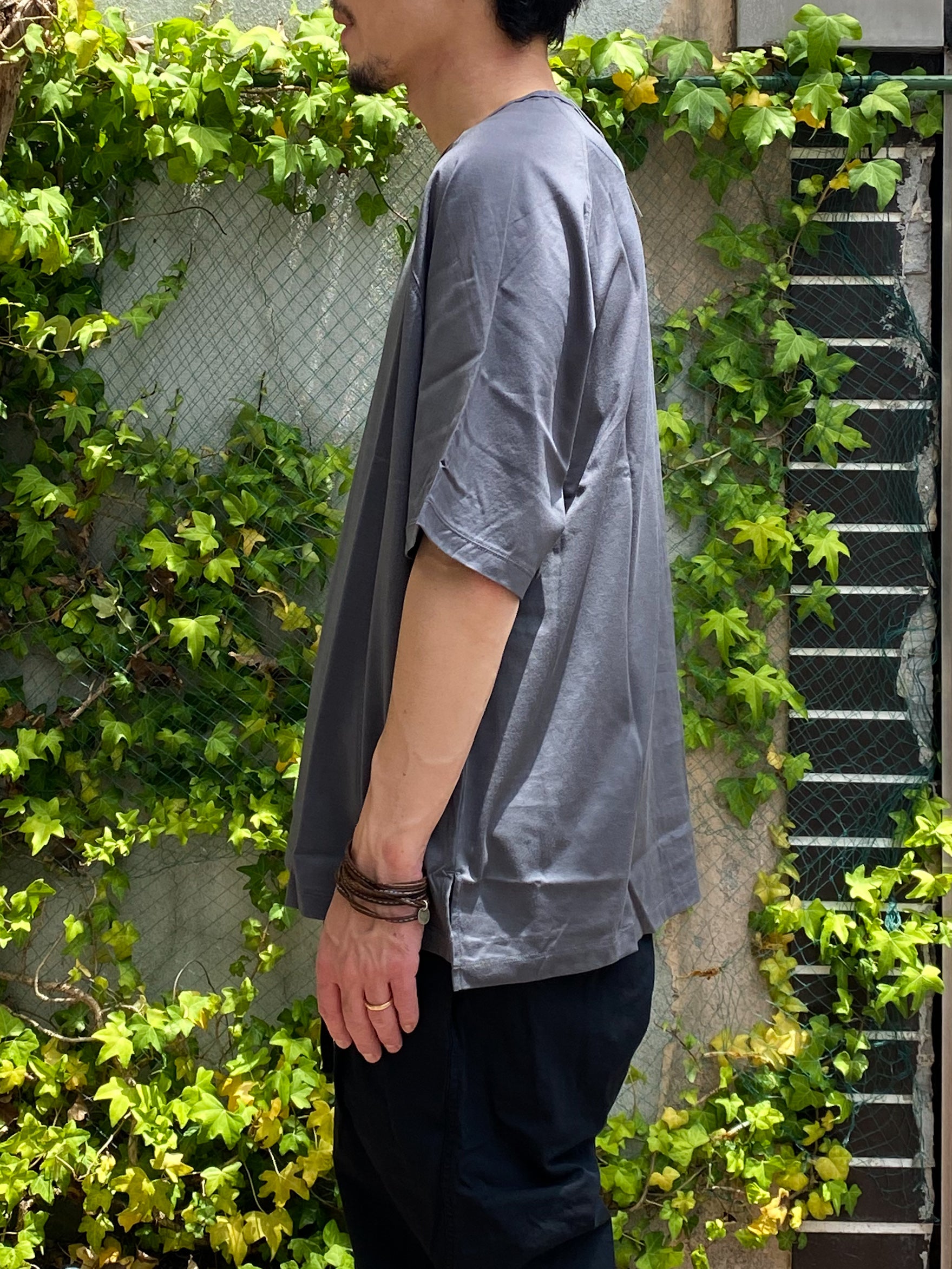 身巾にゆとりを持たせたオーバーサイズTシャツ。程良い光沢のある生地でラグランスリーブを採用し、カジュアルになり過ぎない上品なオーバーサイズTシャツに仕上げました。発色の良いカラーリングで、インナーとしても、1枚着としても活躍するアイテムです。