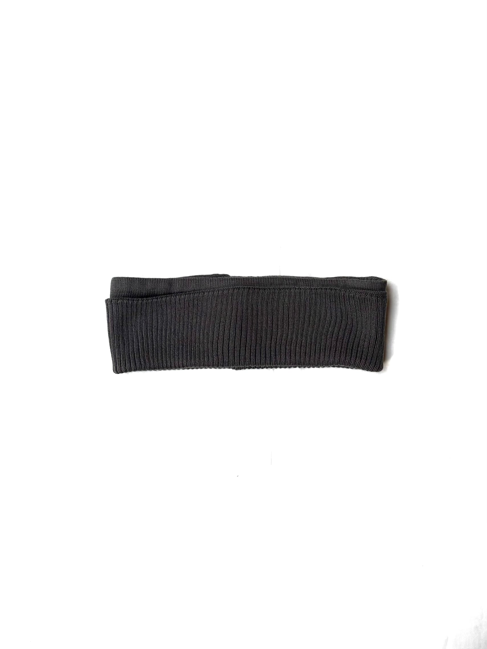 シルクのハイゲージ(14ゲージ)で編み上げた新しいヘッドバンド。折り曲げた状態の幅約7.5cm、広げた状態の幅約13.5cm。