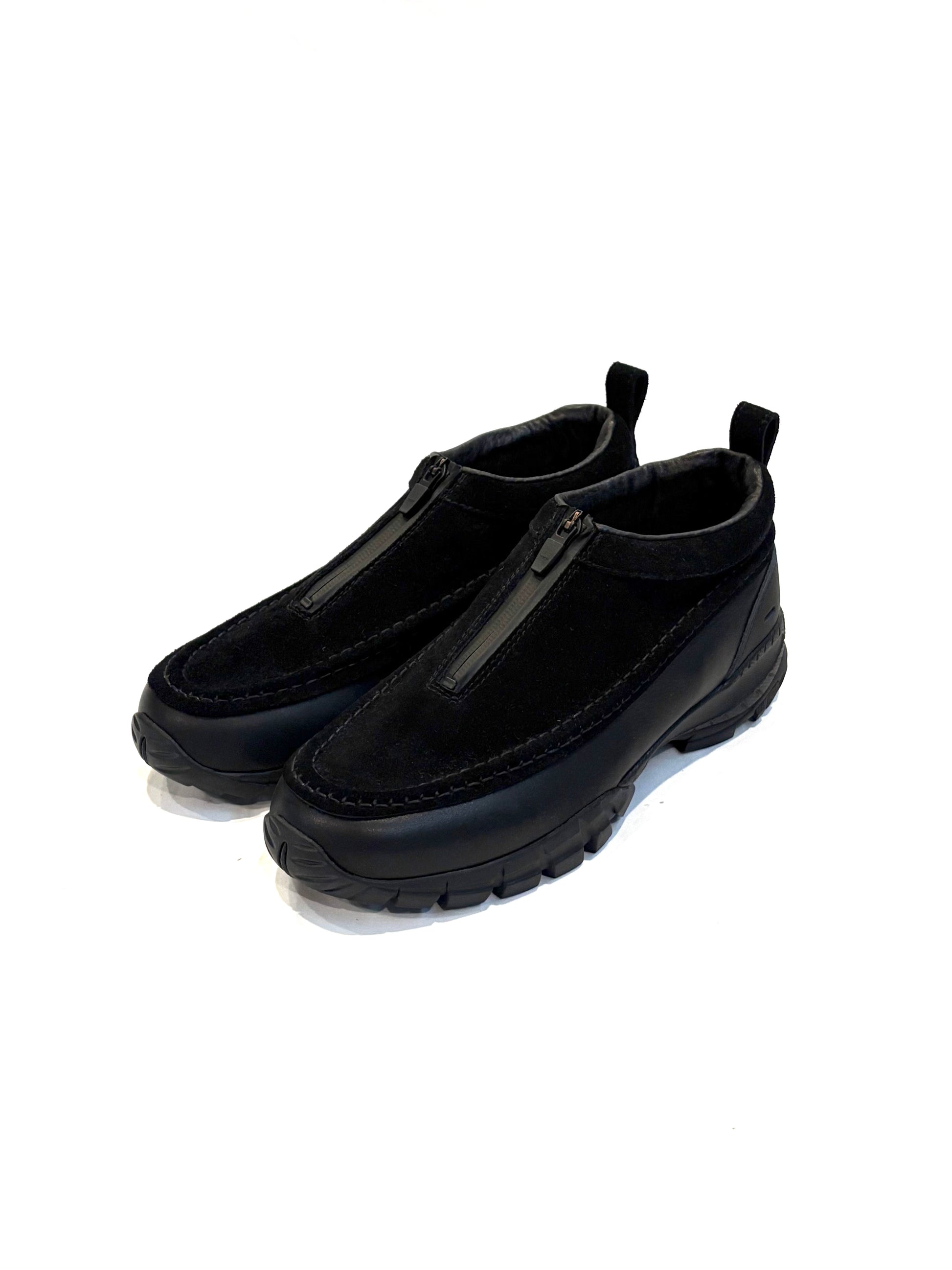 古くから伝わるアメリカ先住民が履いていたモカシンシューズをsuncoreらしく、スニーカーデザインにアレンジ。センターに止水ジップを搭載して着脱を容易にしており、足を包み込むデザインは長時間の歩行も快適にしてくれる。vibram SOLE #565Kは、vibram XS TREKソールと言われ、アウトドアスポーツに対応した万能ソール。安定感があり、履き心地の良さを兼ね備えたソールを採用している。